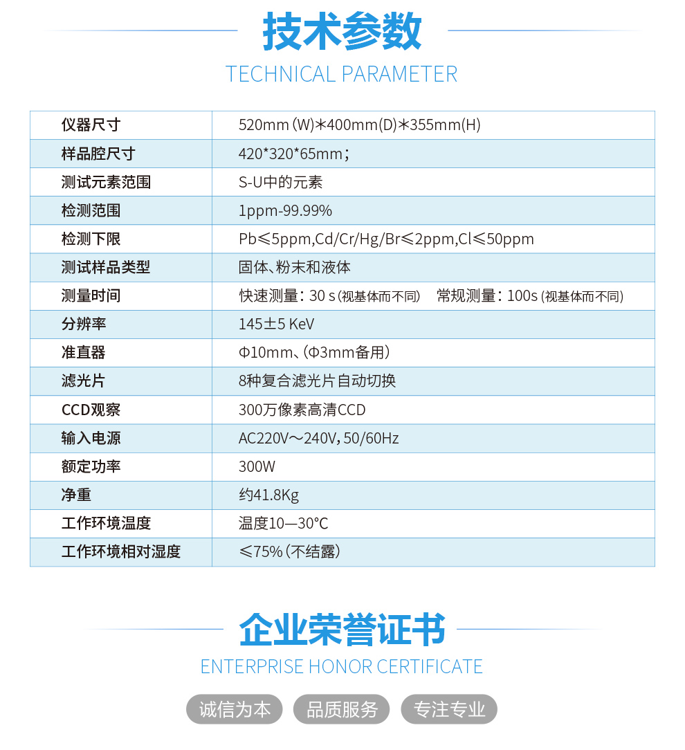 JXF-8000系列是楚英豪旗下CONOMA系列产品中光谱仪类的高端机型,双重射线防护系统;人性化操作界面;轻松应对RoHS指令中重金属元素有害物质管控,铅(Pb)、汞(Hg)、镉(Cd)、总溴(Br)和总铬(Cr),也满足检测无卤素指令中的氯(CI)和溴(Br)元素。